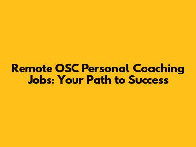Remote OSC Personal Coaching Jobs: Your Guide To Success