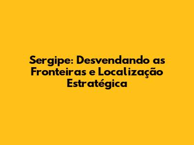 A Importância Estratégica da Localização de Sergipe